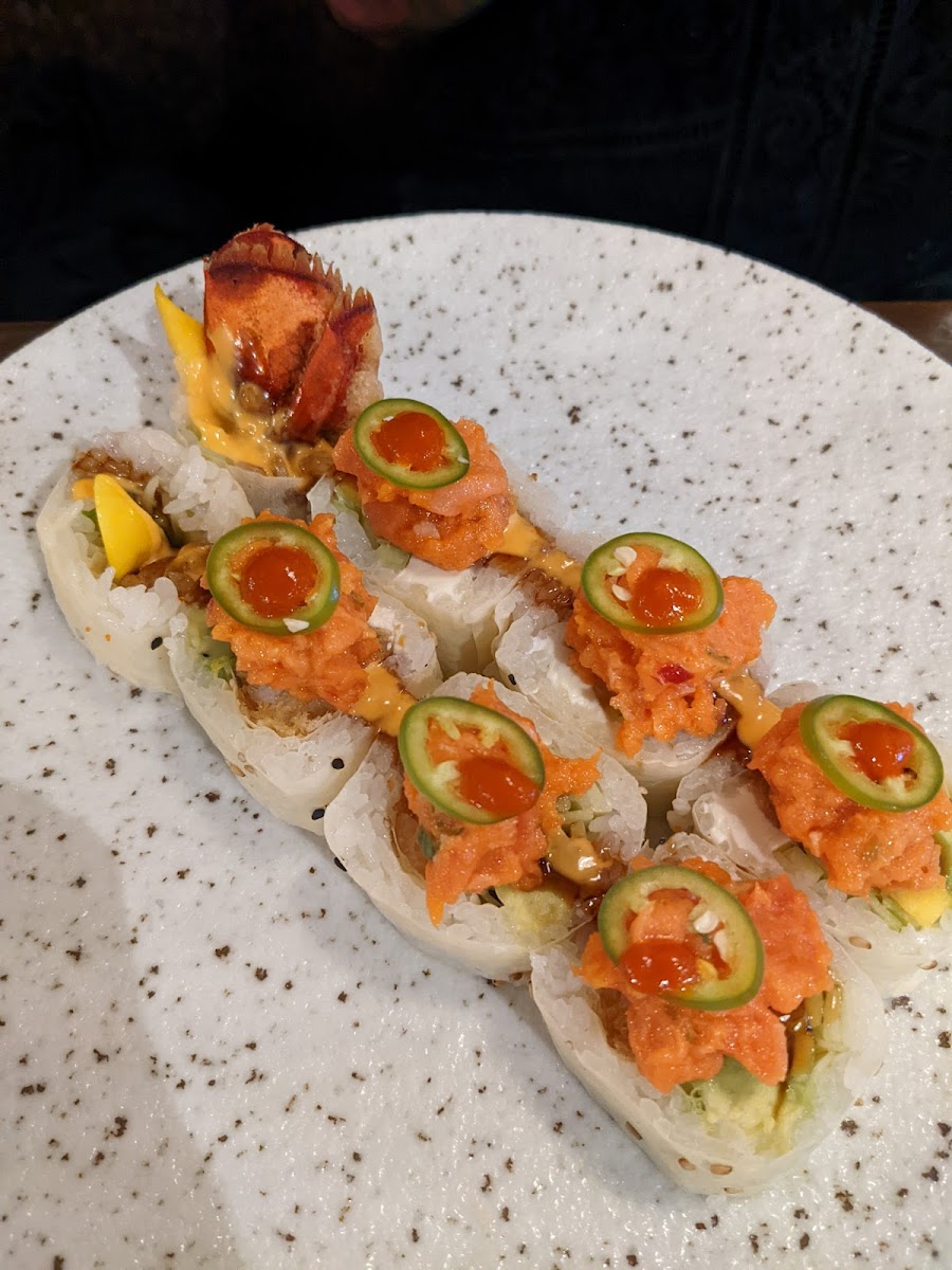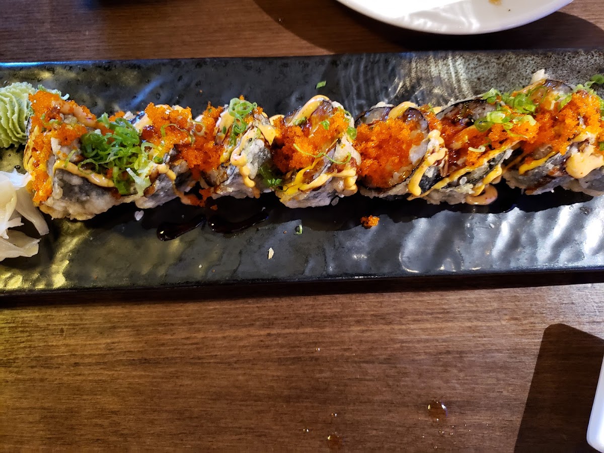 Got a tempura sweet potato roll with mango and avocado added two nights in a row. So good both times with good fresh ingredients. Also tried the veggie gyoza - also very satisfactory. Thank you!
